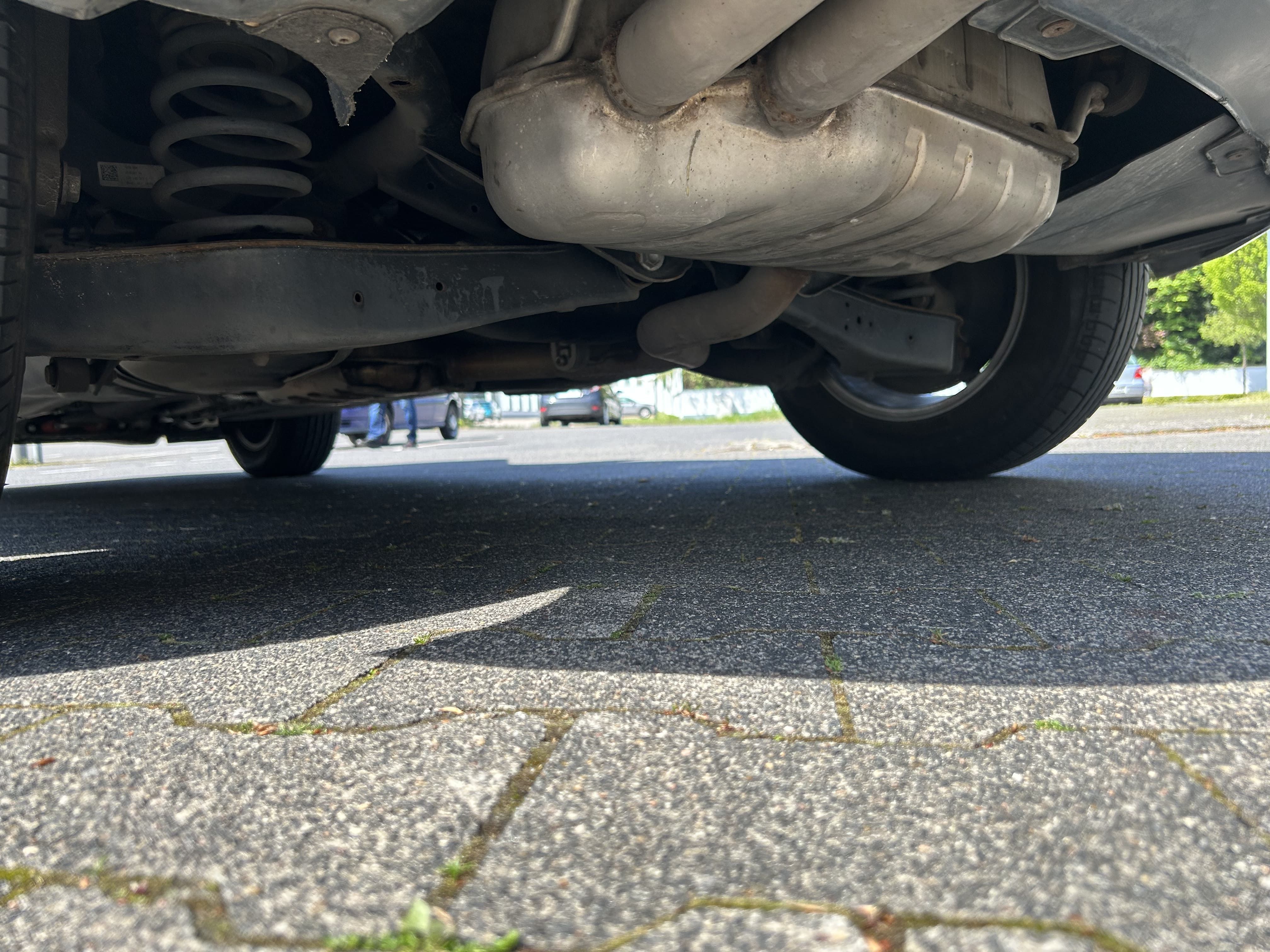 Situace na trhu s ojetými vozy v DE je dnes bohužel taková, že prodejci prodávájí veliké množství vozidel a nepotřebují si nijak zvlášť podbízet zákazníka. NA dotaz zda nám může být vozidlo zvednuto na zvedáku nám bylo řečeno, že ne a pokud se nám to nelíbí můžeme odjet. Dobře, podvozek se dá vizuelně shlédnout v leže na zemi, bohužel se nedají otestovat různé vůle na kolech, ale budiž !